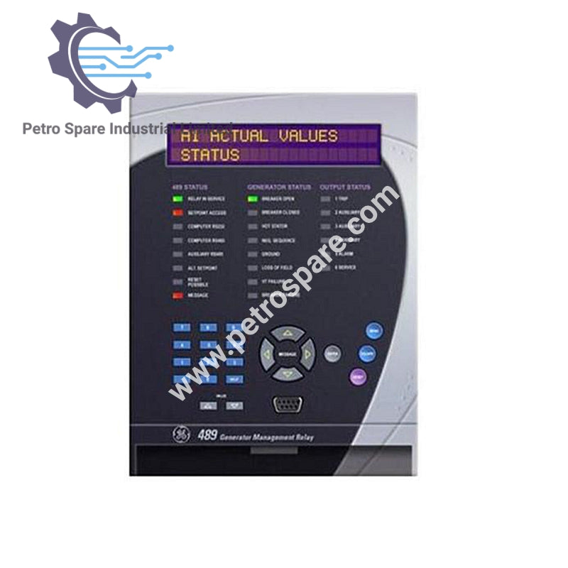 SR489-P1-HI-A20-E is a GE Multilin Generator Management Relay System, designed for generator protection and control.