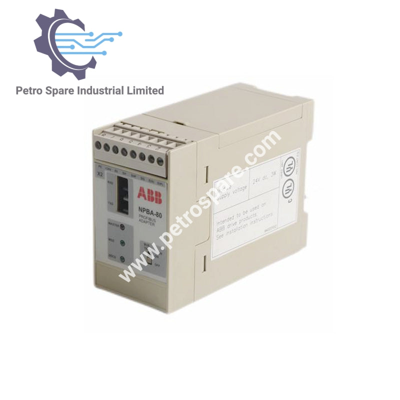 The ABB NPBA-80 PROFIBUS Adapter connects ABB drives to PROFIBUS-DP networks for real-time control and diagnostics.