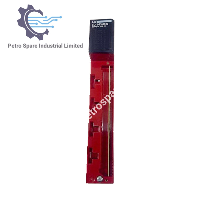 140SDI95300S Módulo de Entrada Discreta DC de Segurança com 16 entradas, 24 V DC, projetado para monitoramento de sinais de segurança.
